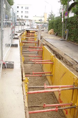 Bau einer Fernwärmeleitung in Unterhaching: E+S- und Krings-Verbau im Doppelpack