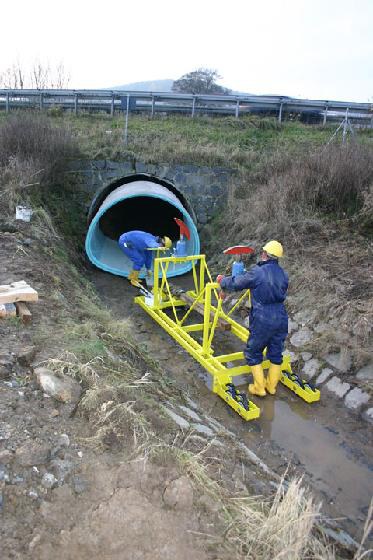 Montage- bzw. Auskleidungsverfahren eignen sich hervorragend für die Instandsetzung von begehbaren Abwasserkanälen. Beim so genannten Montageverfahren werden Rohrsegmente oder Sonderprofilsegmente wie zum Beispiel Ei-, Kasten- oder Drachenprofile als Vollmodul bzw. geteiltes Element über Baugruben in den zu sanierenden Kanal eingebracht und dort mit Hilfe von Montagehilfen montiert. Nach Lagesicherung des Rohrstranges wird der Ringspalt mit hochfließfähigem Dämmer verfüllt. Zum Einsatz kommen Rohrwerkstoffe wie glasfaserverstärktes Polyesterharz (GFK), Polyethylen (PE-HD) oder Polymerbeton. D&S-Geschäftsführer Dipl.-Ing. (FH) Jochen Bärreis bescheinigt dem bewährten Sanierungsverfahren hohes technisches und wirtschaftliches Potenzial. "Seit geraumer Zeit stellen wir im Markt eine erhöhte Nachfrage an Verfahren fest, welche die Risiken und kostenaufwändigen Umpumparbeiten minimieren", so Bärreis. Darauf hat das Unternehmen reagiert: Verfahrensschritte wurden modifiziert und spezielle Werkzeuge für die individuellen Einbausituationen entwickelt. Damit lassen sich Sanierungsmaßnahmen, bei denen das Montageverfahren angewendet wird, auch bei unerwarteten Regenereignissen kurzfristig und schadlos unterbrechen und mit geringem Aufwand zu einem späteren Zeitpunkt fortsetzen. Zu den weiteren Vorteilen des Verfahrens gehört eine hohe Resistenz gegen agressive Abwässer. Zudem ist eine Anbindung an Haltungen mit HDPE- bzw. GFK ausgekleideten Leitungen einfach möglich.