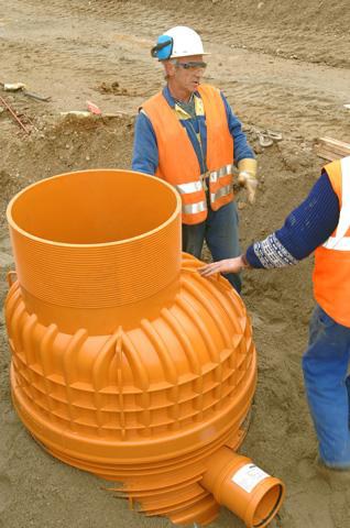 Der zukunftssichere Schacht ist im Baukastensystem aufgebaut und besteht aus den Spritzgussteilen Konus, Schachtring und -boden. Da die Bauteile komplett aus ungefülltem Polypropylen gefertigt werden, ist das System äußerst robust, selbst bei niedrigen Einbautemperaturen. Auch zeichnet es sich durch eine hohe chemische Resistenz aus.
