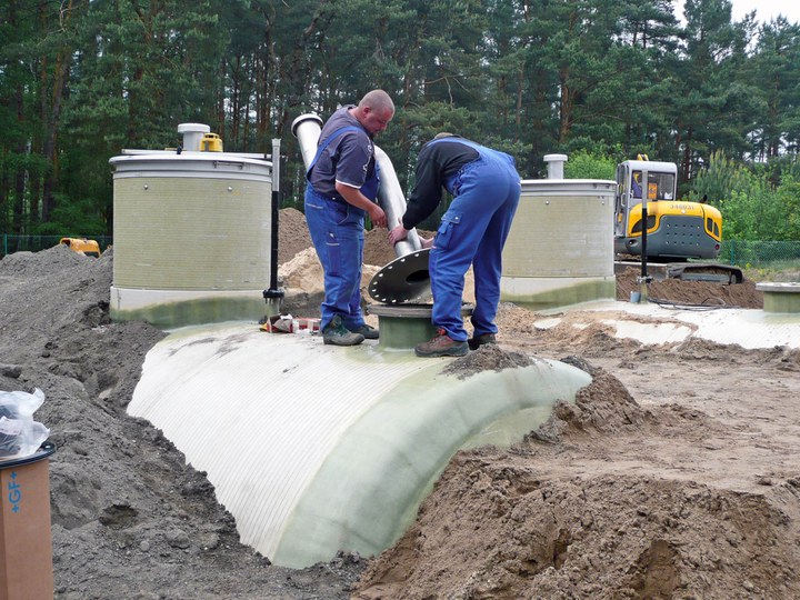 Die 3400 Einwohner der Gemeinde Teupitz im Landkreis Dahme-Spreewald südlich von Berlin, werden ab August 2011 erstmals zentral mit Trinkwasser versorgt. Das Wasser gelangt über ein 34 Kilometer langes Leitungsnetz zu den Verbrauchern, welches sich im Endausbau befindet. Die Reise dorthin beginnt in einem technisch spektakulären Speicher. Statt für ein herkömmliches Betonbauwerk entschied sich die Gemeindeverwaltung für zwei Speicherkammern aus jeweils 24 Meter langen GFK-Wickelrohren der AMITECH Germany GmbH aus Mochau. Neben den betrieblichen Vorteilen dieses Systems spielte der Faktor Zeit eine maßgebliche Rolle bei dieser Entscheidung.