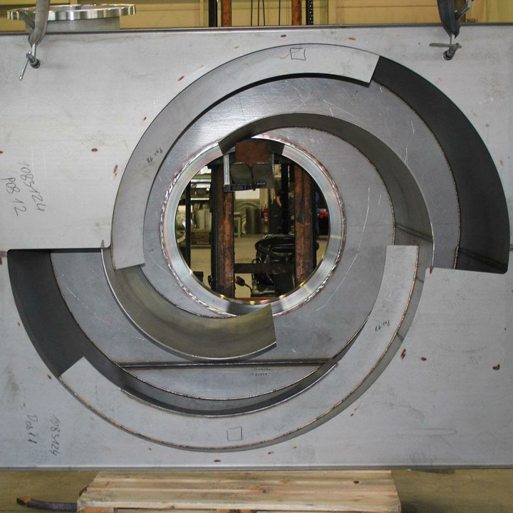 BUTTING hat den Auftrag zur Produktion und Lieferung der Kammer sowie der vorgefertigten Rohrleitungen mit den Halterungsblechen erhalten. Dabei mussten die Rohre mit einer Länge von insgesamt fast 60 m für die Fallleitung in der Abmessung DN 800 auf den Innendurchmesser gefertigt werden. Dank der Möglichkeiten in Knesebeck produzierte BUTTING die Rohre mit nur einer Längsnaht aus breiten Blechtafeln. Höchste Anforderungen wurden an die Endprodukte gestellt: Stark eingeschränkte Toleranzen für den Innendurchmesser sowie die Ovalität und Geradheit wurden spezifiziert; die innen geschliffenen Rohre durften keinen Kantenversatz aufweisen. Außerdem betrug die Längentoleranz der Rohre max. 1 mm und die Geradheit der theoretischen Rohrachse, die sog. Rechtwinkligkeit, ≤ 0,1 %. Zur Erzielung dieser Vorgaben zur Rechtwinkligkeit wurden die Rohre mechanisch bei BUTTING bearbeitet. Die strengen Vorgaben mussten während des Produktionsprozesses mehrfach überprüft und in Maßprotokollen festgehalten werden. Zusätzlich zur internen Qualitätsprüfung fanden sowohl eine Abnahme vom Kunden als auch eine Begutachtung vom zuständigen Bauamt statt.