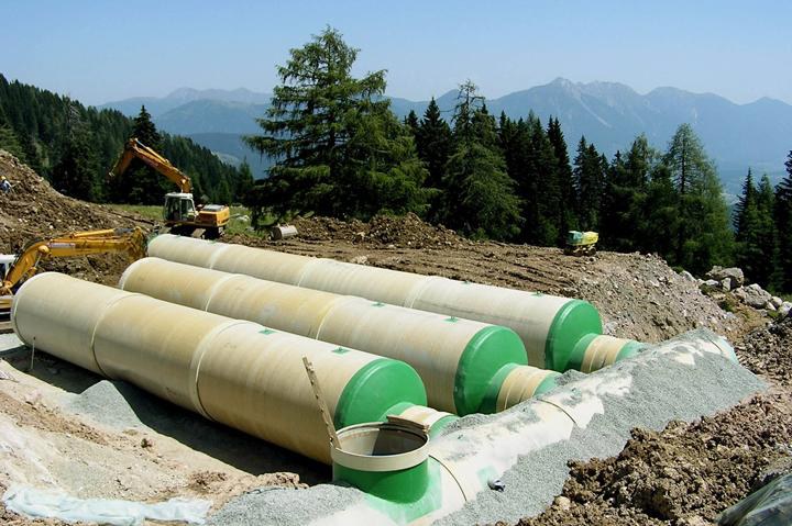Frisches Wasser von der Alm: 450 Kubikmeter Speichervolumen aus GFK-Wickelrohren DN 3000 in 1700 Metern Höhe installiert