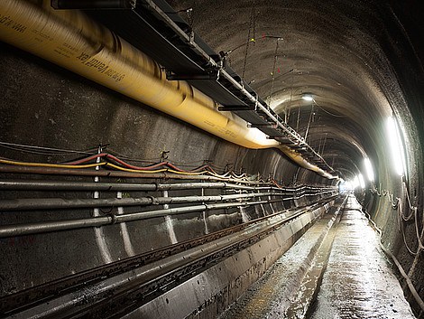 Der "Buddelbär XL" grub sich hartnäckig durch phylitischen Schiefer, Quarzit, Kalkglimmerschiefer und Grünschiefer mit Bänderkalk. Und nur fünfeinhalb Monate nach dem Vortriebsstart Ende März 2013 feierten die Mineure der bauausführenden Marti Tunnelbau AG am 10. September 2013 den erfolgreichen Durchbruch. Schon bei der Konzeption, Fertigung und Baustellenmontage hatten die Herrenknecht-Ingenieure Bestzeiten vorgelegt: Die TBM S-800 stand ein halbes Jahr nach Startschuss einsatzbereit auf der Baustelle.