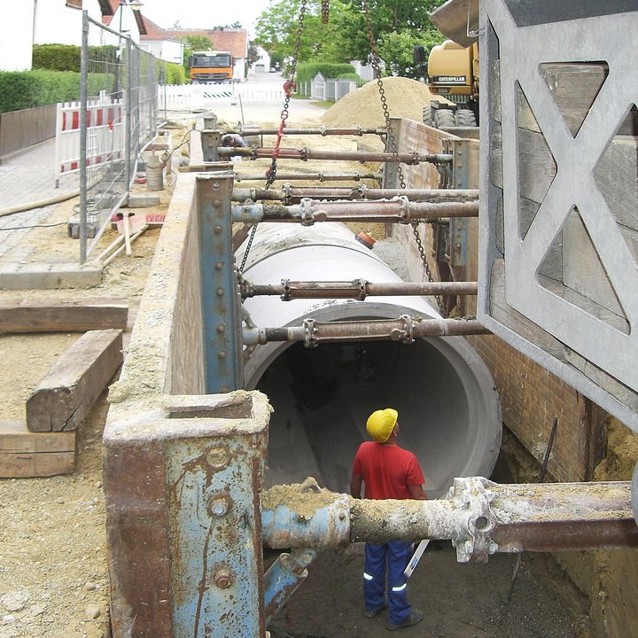 Rund 120 m lang ist der Stauraumkanal den die Geltl Tiefbau GmbH im Zentrum von Wolfersdorf, einer Gemeinde etwa 15 Kilometer nördlich der großen Kreisstadt Freising, verlegt hat. Mit der Baumaßnahme, zu deren Leistungsumfang auch der Neubau des kompletten Mischwassersammlers in der Hauptstraße gehört, sollen Überschwemmungen in Folge von Starkregenereignissen zukünftig vermieden werden.