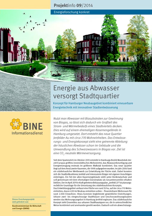 Die im häuslichen Abwasser enthaltenen Fäkalien, das sogenannte Schwarzwasser, können zur Biogaserzeugung genutzt werden. Bisher geschah das meist am Ende aller Abwasserkanäle zentral auf der Kläranlage. Das BINE-Projektinfo "Energie aus Abwasser versorgt Stadtquartier" (09/2014) stellt ein alternatives Konzept für das neue Stadtviertel Jenfelder Au in Hamburg vor.