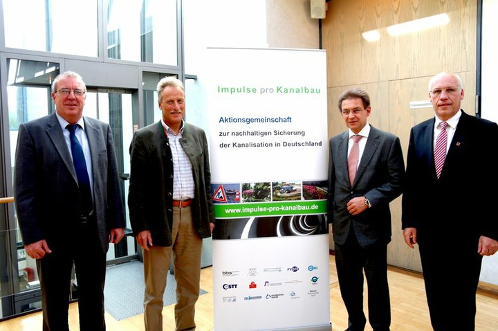 Der Zustand des Netzes zur Abwasserentsorgung in Deutschland muss als dramatisch eingeschätzt werden. Deshalb formierten sich innerhalb des letzten Jahres bundesweit rund 20 Verbände aus den Bereichen Wirtschaft, Industrie, Gewerbe, Gewerkschaft sowie Universitäten zum Aktionsbündnis „Impulse pro Kanalbau“. Ziel der Kampagne ist es, auf Folgen des erheblichen Investitionsstaus durch die öffentliche Hand aufmerksam zu machen.