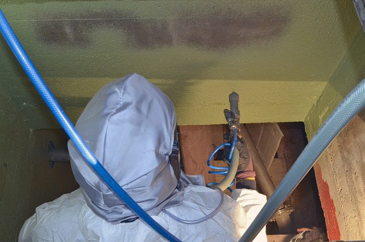 Dabei ist das markant grüne Material, je nach der (durch Wahl des Härters einstellbaren) Viskosität in Sprühtechnik ebenso applizierbar wie als Anstrich; es kann ggf. aber auch als Spachtel eingesetzt werden, wenn im Vorfeld der flächigen Beschichtung z.B. Fehlstellen aufprofiliert werden müssen. Die Wahl des jeweiligen Anwendungstechnik hängt daher maßgeblich von den Rahmenbedingungen in der Örtlichkeit ab. In den Schächten und Abscheidern auf dem Kanal-Schmitt-Betriebsgelände in Kahl setzte man auf den Anstrich: In der gegebenen Standardschacht-Geometrie lässt sich die manuelle Spritztechnik nur beschränkt einsetzen.