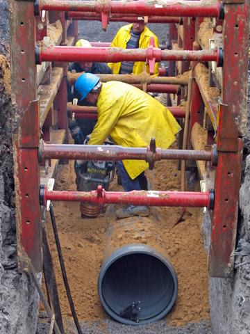 Ein gravierender Unterschied, wenn man den zeitlichen und damit auch finanziellen Mehraufwand beim Einsatz von manchen Schwergewichten aus anderen Rohrmaterialien zum Vergleich heranzieht; zum Beispiel in Bezug auf die Baustellenlogistik oder auch hinsichtlich der erforderlichen größeren Grabenbreite für den Einbau. "Außerdem kann man die Rohre im Handumdrehen ablängen und damit ohne großen technischen Aufwand oder Zeitverlust auf die jeweilige Einbausituation anpassen – und das mm-genau", nennt Becker einen weiteren materialtypischen Vorteil der Kunststoffrohre.