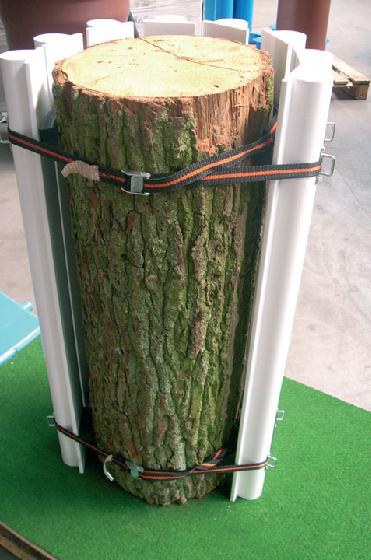 Der Stammschutz ist notwendig, um direkten mechanischen Verletzungen durch Baustellenfahrzeuge und Materialien vorzubeugen. Dementsprechend wird „Stammschutz und Ummantelung“ gemäß DIN 18920 auch von den Tiefbauämtern ausgeschrieben. Vor allem bei Baumaßnahmen mit eingeschränkten Platzverhältnissen kann unter Umständen kein weitläufiger Schutzbereich eingerichtet werden. In solchen Fällen werden die betroffenen Bäume üblicherweise mit einem Stammschutz aus Holzbrettern lückenlos verschalt. „Eine Vorgehensweise, die in der Regel relativ zeitaufwendig ist“, stellt Funke-Produktmanager Frank Horstmann fest. Im Gegensatz hierzu ist der Funke Baumschutz aufgrund seiner Konstruktion schnell und einfach montiert und die Gummipuffer auf der Rückseite sorgen für einen bestmöglichen Schutz des Baumes. „Darüber hinaus ist das schlagzähe Material äußerst langlebig und mehrfach wieder verwendbar“, nennt Horstmann weitere Vorteile des Produktes. Hinzu kommt: Der Funke Baumschutz ist in verschiedenen Längen – 2 m, 2,5 m und 3 m – lieferbar und lässt sich individuell auf den Durchmesser des zu schützenden Baumstammes anpassen.