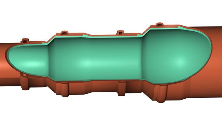 Die allgemeine Bauaufsichtliche Zulassung gilt für das Schlauchliningverfahren „lineTEC® ProFlex“. Dieses besteht aus einem Polyesterfaserschlauch der VFG und dem Zwei-Komponenten-Epoxid-Harzsystem „Biresin® lineTEC® EP 40“. Saniert werden können damit schadhafte Abwasserleitungen mit Kreisquerschnitten in den Nennweiten DN 100 bis DN 200, also typische Hausanschluss- und Grundleitungen. Hervorzuheben ist, dass der ProFlex-Liner nach Herstellerangaben zwei Dimensionssprünge überwinden kann. Auch stellen Bögen bis zu 90° kein Hindernis dar.