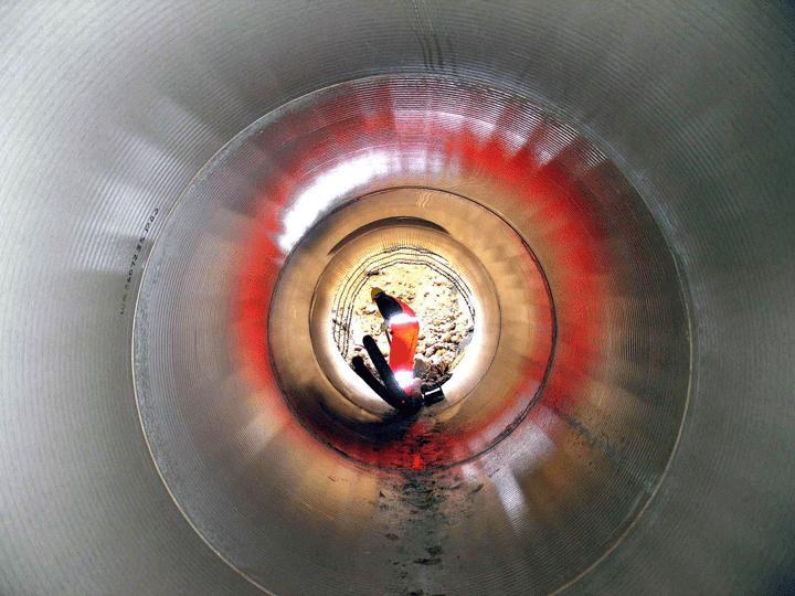 Im Amitech-Werk in Mochau wurden jedoch nicht nur die Rohre gefertigt, sondern auch in Laminattechnik gefertigte 37 °- Segmentbögen der gleichen Nennweite für einen Richtungswechsel innerhalb der Trasse. Desgleichen lieferte Amitech zwei Rohre mit integrierten Tangentialschächten samt Sicherheitsleitern.- Die Möglichkeit, derartige und andere Sonderbauteile nach Maß zu fertigen, trägt entscheidend zur wachsenden Popularität des FLOWTITE-Rohrsystems bei Planern und Netzbetreibern bei.