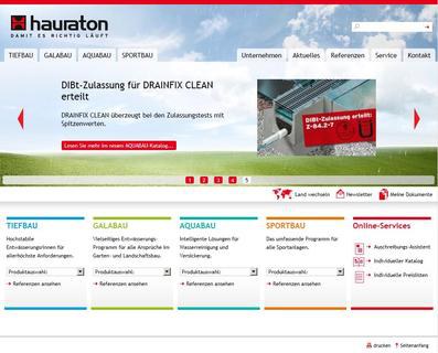 Erfolgreicher Relaunch: Anlässlich der IFAT 2012 in München, der Weltleitmesse für Wasser-, Abwasser-, Abfall- und Rohstoffwirtschaft, präsentierte Hauraton seinen neuen Internetauftritt. Der Entwässerungsexperte aus Süddeutschland hat seine Firmen-Webseite noch kundenfreundlicher gestaltet. Mit dem praktischen Ausschreibungsassistenten 2.0. oder den individualisierten Katalogen und Preislisten lag Hauraton im Netz schon vorher ganz weit vorn. Die bewährten Online-Tools werden nun durch neue Features ergänzt, die die Anwendung zusätzlich vereinfachen.