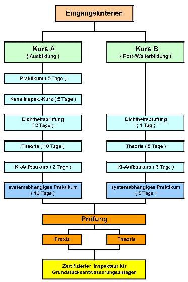 Die Kurse schließen mit einer Prüfung ab und die Teilnehmer erhalten ein Zertifikat. Mit erfolgreichem Abschluss der Kurse ist die Anforderung an die Qualifikation als verantwortliches Personal entsprechend der Beurteilungsgruppe G des RAL-Gütezeichens Kanalbau RAL-GZ 961 erfüllt.
