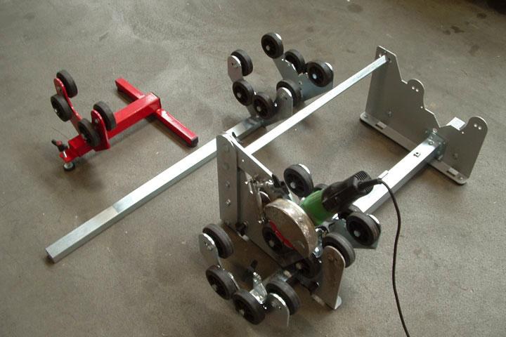 Mit dem neuen HS®-Rohrschneid- und Anfasgerät können KG-, HS- oder CONNEXRohre aus PVC-U im Nennweitenbereich von DN/OD 110 bis DN/OD 315 mit einer maximalen Wandstärke von 20 mm in einem Arbeitsgang abgelängt und angefast werden. Es besteht aus einem Winkelschleifer, der fest mit einem verzinkten Gestell verbunden ist.