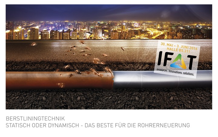 Besuchen Sie uns vom 30. Mai bis 3. Juni 2016 auf der IFAT in München und lassen Sie sich von den cleveren Lösungen von TRACTO-TECHNIK für die Wasserver- und -entsorgung begeistern.