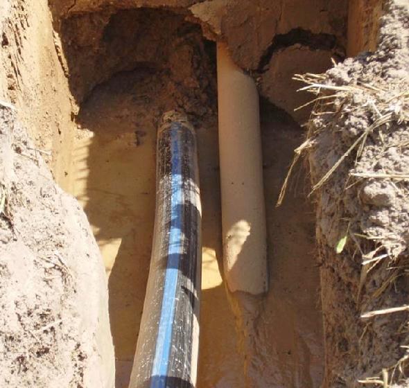 Aufgrund der hohen Anforderungen fiel die Wahl auf das REHAU Druckrohrsystem RAUPROTECT aus dem hochwertigsten, unvernetzten Werkstoff PE 100-RC (resistant to crack). Die Spannungsrissbeständigkeit der punktlastbeständigen Vollwand-Druckrohre sorgt dafür, dass auch bei auftretenden Punktlasten an der Rohrinnenseite keine Rissinitiierung erfolgt. Das Rohrsystem ist für alle Bodenklassen und alternative Verlegeverfahren wie Spülbohren, Einpflügen oder Einfräsen nachweislich einsetzbar.