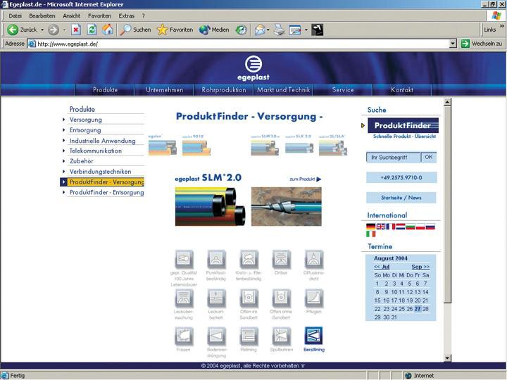 Mit diesem Service möchte egeplast dazu beitragen, Kunden und Partner auf dem neuesten Stand der Kunststoffrohr-Technologie zu halten. Neben der deutschen und englischen Vollversion wird das egeplast Produktprogramm dem internationalen Nutzer in sieben weiteren Sprachen präsentiert.