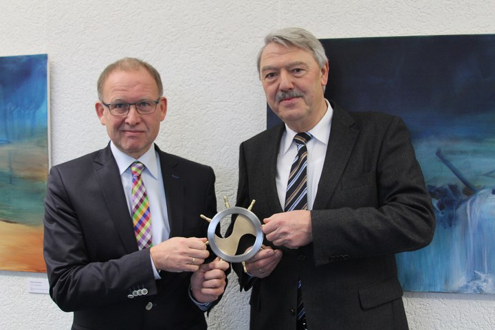Bei der offiziellen Verabschiedung von Prof. Wille am 16. Januar 2014 in Wuppertal überreichte er dem neuen Vorstand Georg Wulf symbolisch das Steuerrad für den Wupperverband.
