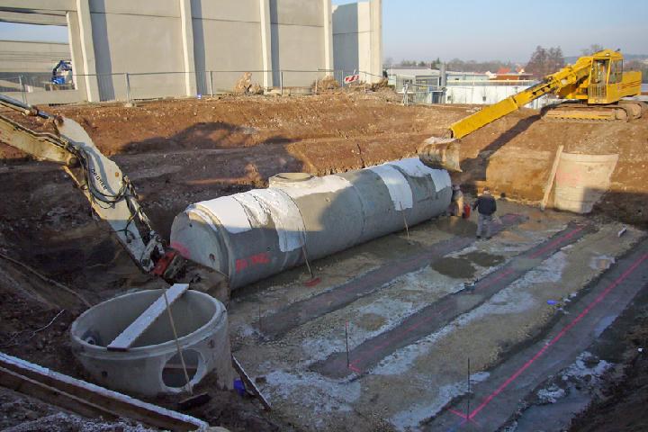 Eingebaut wurden ca. 75 lfm. Stahlbetonrohre mit einer Nennweite von DN 1200 mit einer fest in der Muffe integrierten Dichtung sowie 90 lfm. Stahlbetonrohre der Nennweite DN 2000 mit Keilgleitdichtung. Sie wurden bei der J. SCHNURRER GmbH & Co. KG entsprechend der FBS-Qualitätsrichtlinien gefertigt. Ein System, das sowohl dem Hersteller im Hinblick auf seine Produkthaftung, als auch dem Öffentlichen Auftraggeber im Sinne seiner Amtshaftung Sicherheit bietet und dem Anwender von FBS-Kanalbauteilen eine hohe Qualität garantiert. Durch eine umfassende Werkseigene Produktionskontrolle wird eine für Rohrwerkstoffe einmalige und lückenlose Qualitätskontrolle von den Ausgangsstoffen über die Herstellung bis zu den Endprodukten sichergestellt. Im Rahmen der halbjährlichen Fremdüberwachung durch amtlich anerkannte Güteschutzgemeinschaften oder Prüfinstitute, wird die Erfüllung der Norm- und FBS-Anforderungen kontrolliert und bewertet. Mit dem FBS-Qualitätszeichen wird die geprüfte Qualität der FBSKanalbauteile dokumentiert.