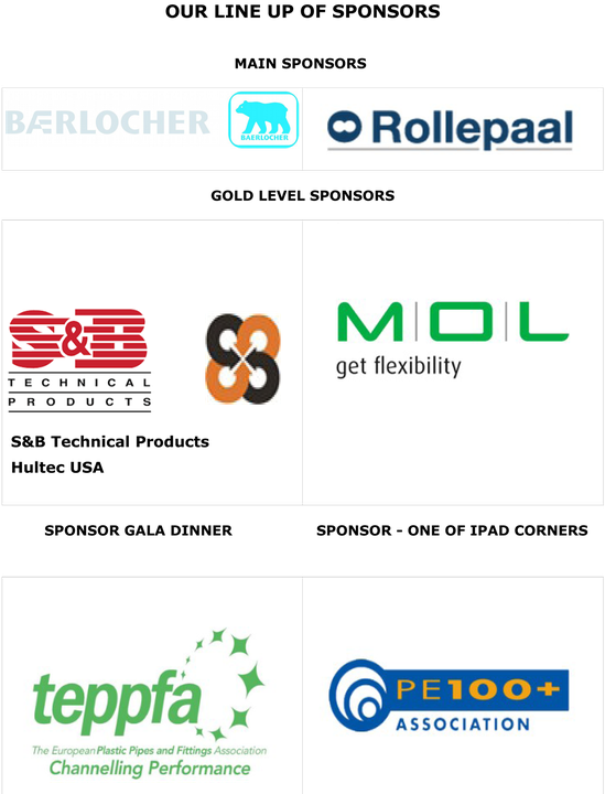 Patterson also reports that Hultec and MOL have confirmed their sponsorship of the event as Gold level sponsors. “We are very pleased that these companies - both world names in providing sealing solutions to the plastic pipe industry - have affirmed their sponsorship,” Patterson adds.