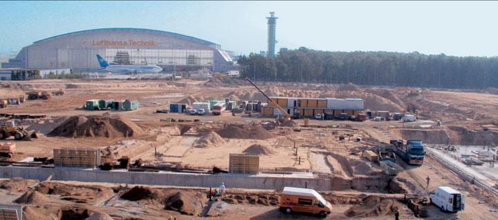The first half of the hangar with a floor space of 25,000 square metres is expected to be completed in 2008. When the A380 with a weight of approximately 370 tons then taxies into the hangar, a huge pressure is applied on the subfloor.