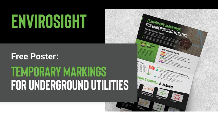 The exchange of accurate and consistent information between utility operators and excavators is key to ensuring dig site safety. Envirosight’s Temporary Markings for Underground Utilities poster lists common symbols, abbreviations and colors used to mark buried infrastructure.