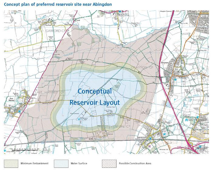 The plans are the culmination of three years of studies, building on previous work by Thames Water, which have assessed the projected increase in demand for water and the most environmentally and economically sustainable methods of securing the supplies needed. The proposed site to the south-west of Abingdon has been identified as the most suitable for a reservoir, after an assessment of 54 other potential sites in the River Thames catchment area.