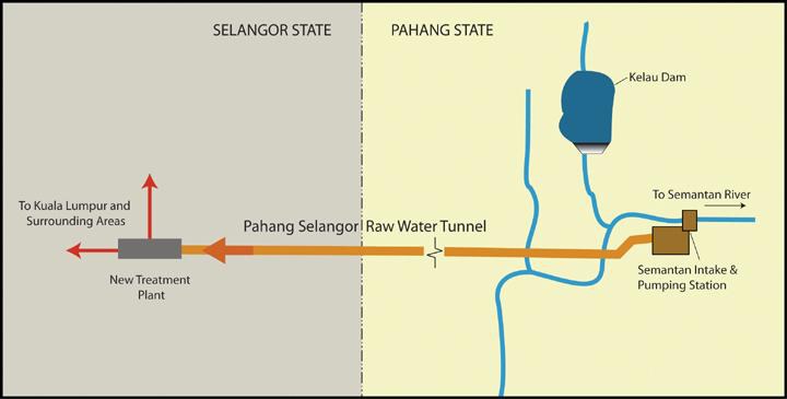 Once complete in 2013, the tunnel will convey approximately 27.6 cubic meters of water per second (7,300 gallons per second) for use in domestic and industrial applications. Untreated water will be pumped from the Semantan River and will then flow via gravity from the intake structure to an outlet connecting basin and planned water treatment facility near Kuala Lumpur.
