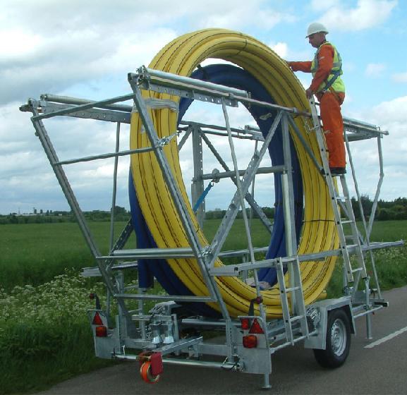 TT-UK, the Grundowinch suppliers, add a universal PE Coil Pipe Transporter to their extensive range of Trenchless Technology products. With this strong and highly manoeuvrable trailer, PE pipe coils with pipe diameters of 180mm SDR11 with a lengths of 100m, can be safely transported and uncoiled. If smaller diameter PE pipe coils are used i.e. 63mm to 125mm, longer lengths or even two coils can be transported at the same time.
