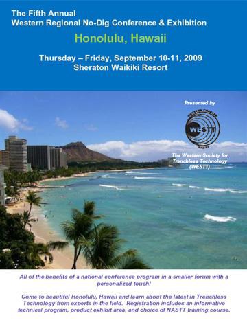 The Western Society for Trenchless Technology (WESTT) is pleased to announce that it will hold its 5th annual Western Regional No-Dig Conference and Exhibition, Sept. 10-11, 2009, in Honolulu, Hawaii at the Sheraton Waikiki Resort.