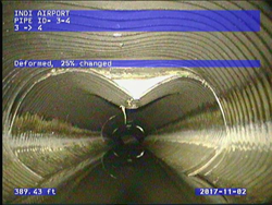 Woolpert employed closed-circuit television (CCTV) at IND and discovered the stormwater pipes were deformed, causing joints to separate and allowing fill to seep in, which caused the depressions.