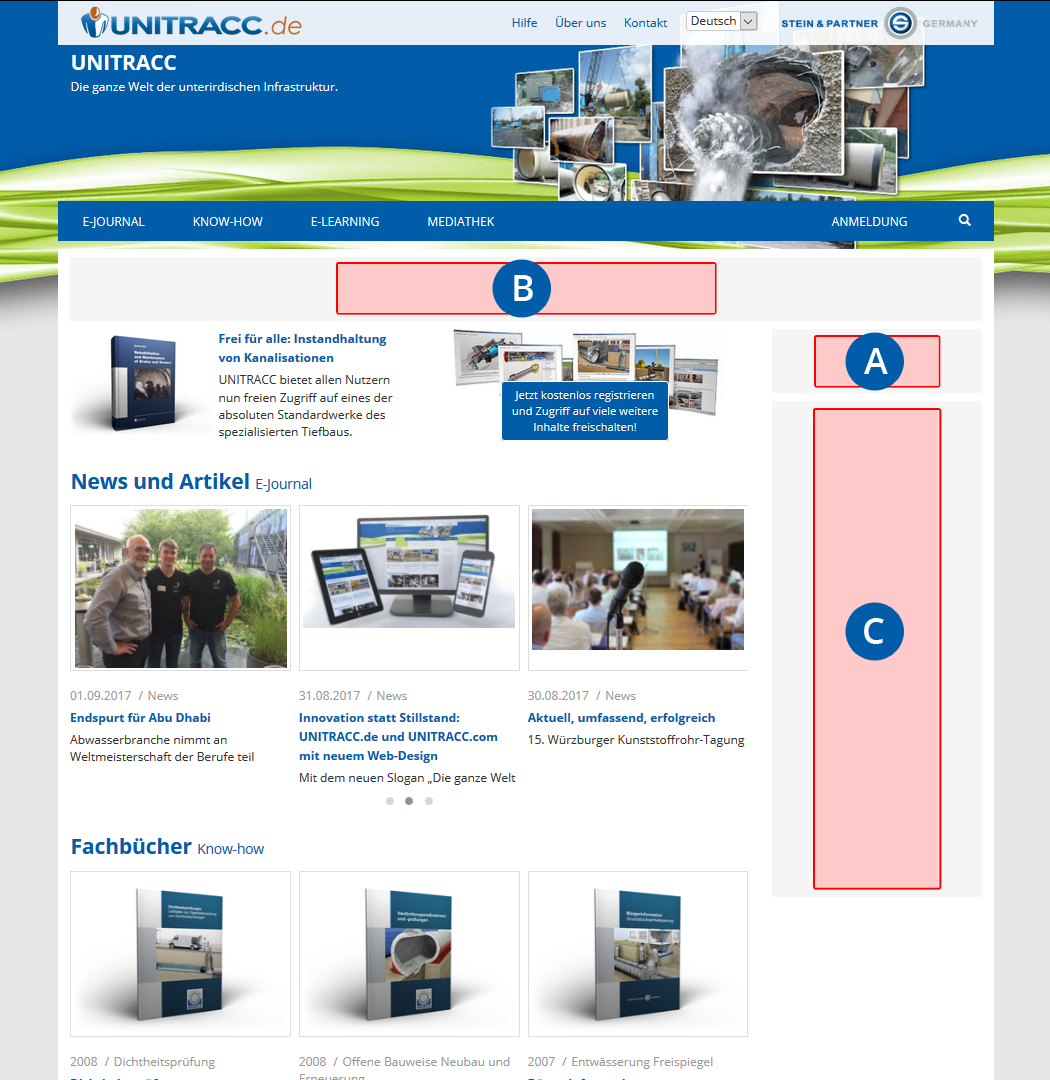 Werbeplatzierung UNITRACC Webseite (Stand 09.2017)